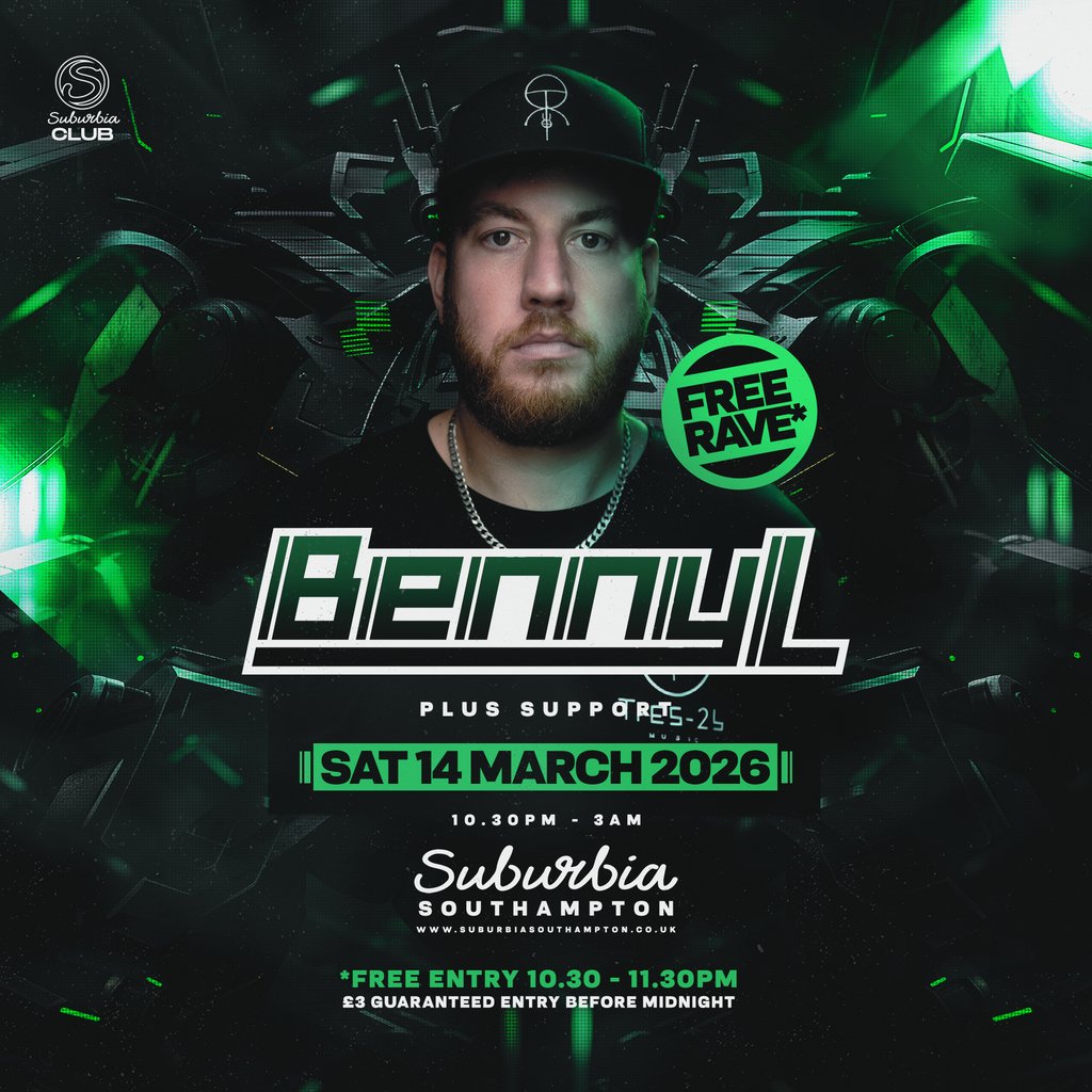 Suburbia Presents: Benny L FREE RAVE + Support at Suburbia Southampton